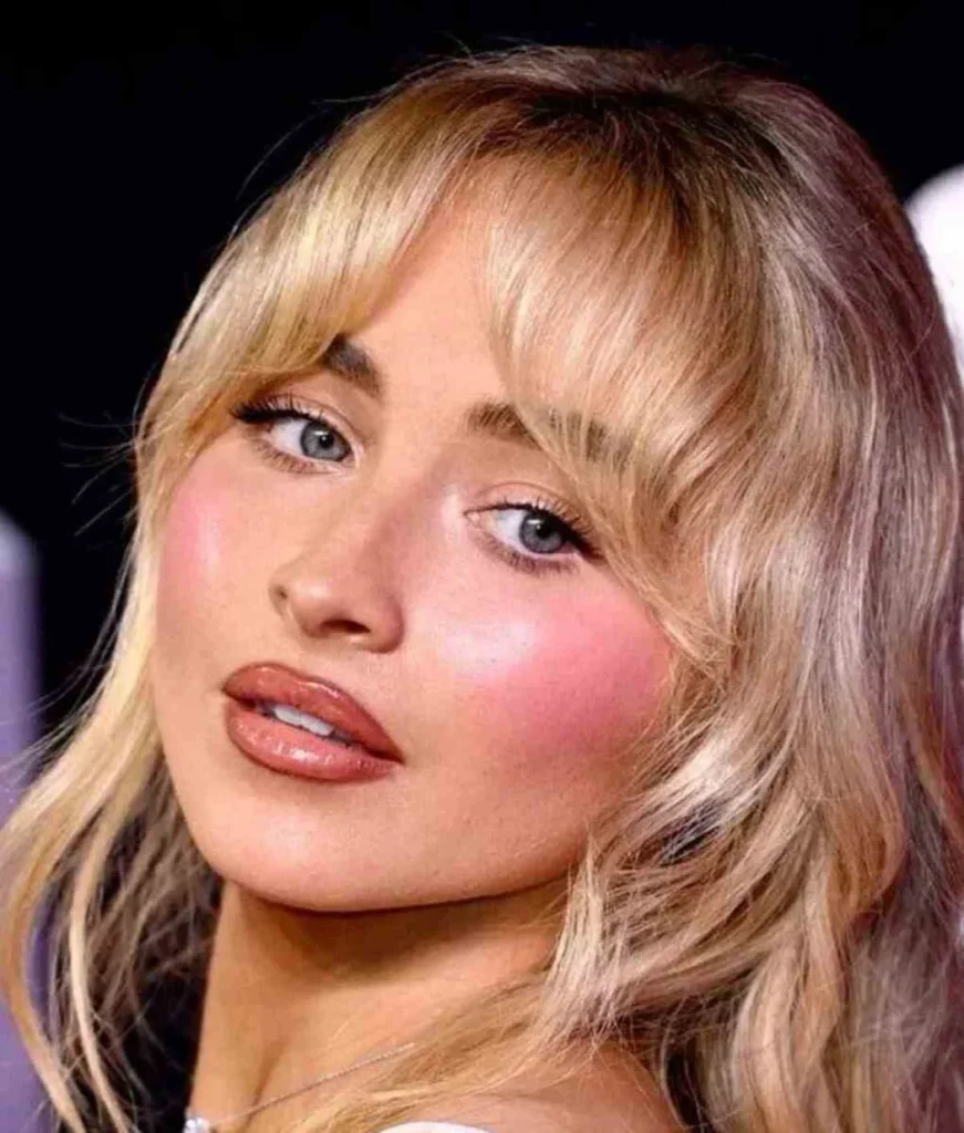 Aquela aparência de “saúde” discreta deu lugar a um visual muito mais ousado. A tendência agora é o blush em destaque, que vai além das maçãs do rosto, subindo até as têmporas e se misturando perfeitamente com a sombra dos olhos. Inspirado no estilo marcante de Sabrina Carpenter.